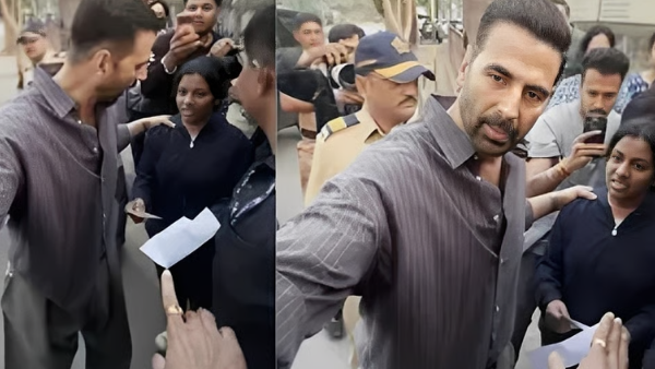 महाराष्ट्रात आज 29 महानगरपालिका संस्थांमध्ये मतदान सुरू आहे. सकाळपासून जोरदार मतदानाला सुरुवात झाली आहे. कलाकारांनीही सकाळीच मतदान केंद्रावर मतदानासाठी हजेरी लावली होती. अभिनेता अक्षय कुमार (Akshay Kumar) प्रत्येक मतदानावेळी सकाळी लवकर मतदान करून बाहेर पडतो. यावेळीही अक्षय कुमारने सकाळीच मतदान करत आपला मतदानाचा हक्क बजावला. अक्षय कुमार मतदान केंद्रावरून बाहेर येत असताना त्याला एक मुलगी भेटली. त्या मुलीने अक्षय कुमारकडे एक विनंती केली. त्यानंतर ती अक्षय कुमारच्या पायाही पडली. अक्षय खन्ना मतदान करून बाहेर पडला. तो त्याच्या कारच्या दिशेनं जात असताना एका लहान मुलीने त्याला हाक मारली. तिची हाक ऐकून अक्षय थांबला. त्या मुलीच्या हातात एक कागद होता. ती म्हणाली, वडिल खूप मोठ्या कर्जात आहेत. प्लिज त्यांना बाहेर काढा.
