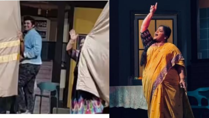 मध्यंतरानंतर कलाकार रंगमंचावर परतण्यास सज्ज होते, मात्र पडदा उघडण्यासाठीची यंत्रणा अचानक बंद पडली. धक्कादायक बाब म्हणजे त्या वेळी नाट्यगृहात एकही टेक्निशियन उपस्थित नव्हता. परिणामी कलाकारांनीच पुढाकार घेत हाताने पडदा उघडला आणि त्यानंतर नाटक पुन्हा सुरू करण्यात आले.