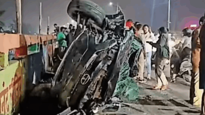 अंबरनाथ (Ambernath) उड्डाणपूलावर शुक्रवारी संध्याकाळी भीषण अपघाताची घटना घडली. भरधाव कारवरील चालकाचा ताबा सुटल्याने कारने समोरून येणाऱ्या दोन ते तीन दुचाकींना जोरदार धडक दिली. कार उड्डाणपूलावरून पलटी झाली. या भीषण अपघातात कारमधील चालक तसेच दुचाकीवरील तिघांचा दुर्देवी मृत्यू झाला. या घटनेत दोघे गंभीर जखमी झाले आहेत. या भीषण अपघातामुळे उड्डाणपूल आणि कल्याण बदलापूर मार्गावर भीषण वाहतूक कोंडी झाली होती.