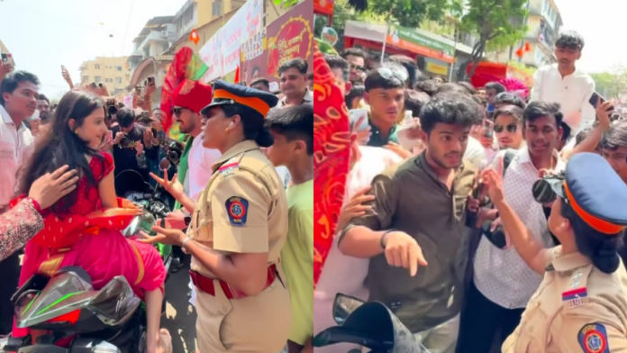 गर्दीची पर्वा न करता सुरू असलेल्या या प्रकारामुळे परिस्थिती बिघडण्याआधीच कर्तव्यावर असलेल्या एका महिला पोलीस अधिकाऱ्यांनी तत्काळ हस्तक्षेप केला. त्यांनी त्या तरुणीला सर्वांसमोरच सुनावलं आणि तिच्या वागणुकीवर कडक शब्दांत नाराजी व्यक्त केली. नऊवारी साडीमध्ये पारंपरिक लूकमध्ये असलेल्या या तरुणीने स्टाइल दाखवण्याच्या नादात केलेली ही कृती उलट तिच्याच विरोधात गेली. पोलिसांच्या समज दिल्यानंतर तिला आपल्या चुकीची जाणीव झाली आणि ती लगेचच बाईकवरून खाली उतरली.दरम्यान, संबंधित बाईक मालकाला विचारणा करण्याचा प्रयत्नही झाला, पण काही तरुणांनी वाद घालण्याचा प्रयत्न केला. स्थानिक नागरिकांनी मध्यस्थी करत परिस्थिती नियंत्रणात आणली आणि काही वेळातच वातावरण शांत झाले.