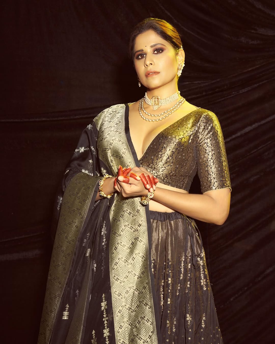 काळ्या आणि सोनेरी रंगाच्या आकर्षक लेहंग्यात दिसली सई